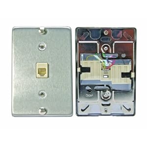 This is a good, old-fashioned style telephone wall mount jack. I prefer these to the newer plastic style ones with the screw-in pins. This one is just like the old ones you used to get from the phone company years ago.