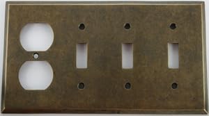 Aged Antique Brass 4 Gang Wall Plate - 3 Toggle 1 Duplex Outlet Price